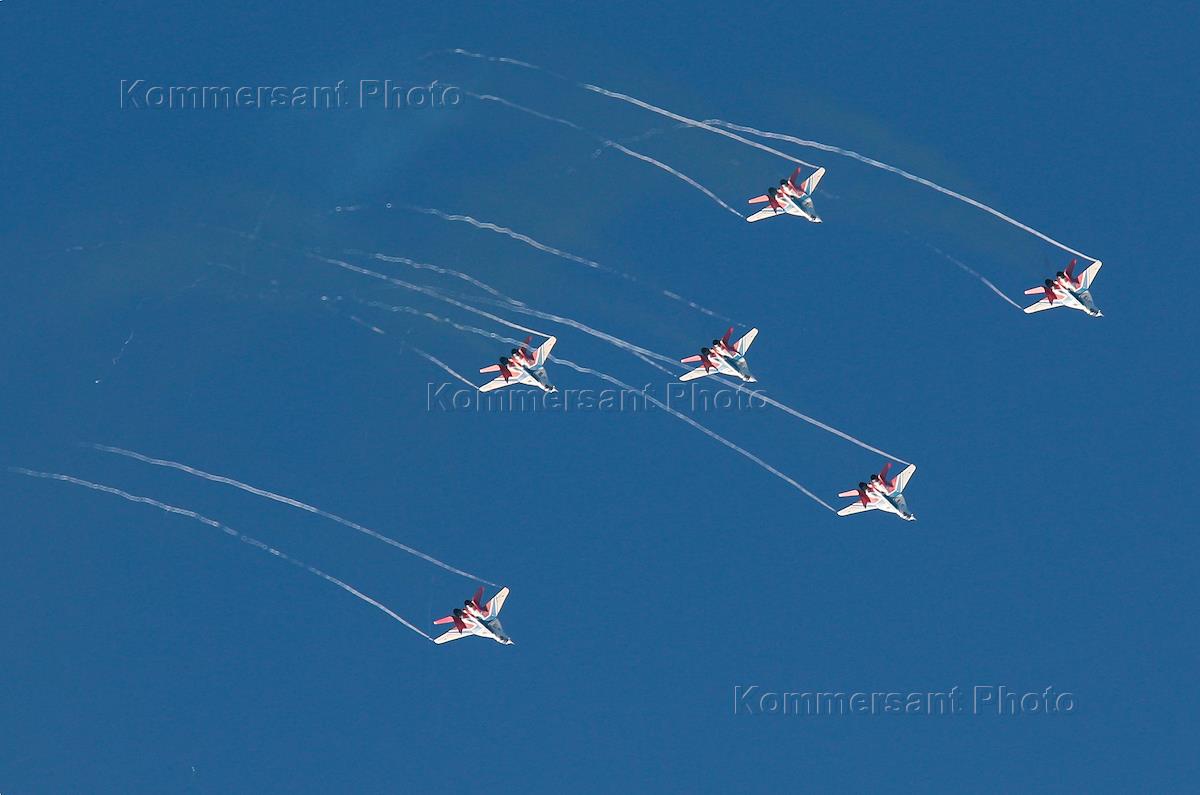 Празднование дня города Иннополиса. Пилотажная группа "Стрижи" во время авиашоу.