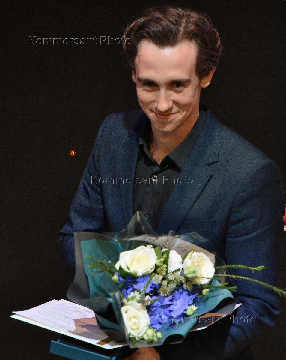 XIV Международный конкурс артистов балета и хореографов на исторической сцене Государственного академического Большого театра (ГАБТ). Церемония награждения. Первый солист Баварского Государственного балета, приглашенный солист Челябинского государственного академического театра оперы и балета имени М.И. Глинки Дмитрий Выскубенко во время церемонии.