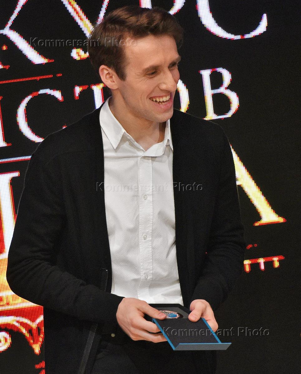 XIV International competition of ballet dancers and choreographers on the historical stage of the State Academic Bolshoi Theater (SABT). Award ceremony. Ballet dancer of the Mariinsky Theater Maxim Izmestyev during the ceremony.