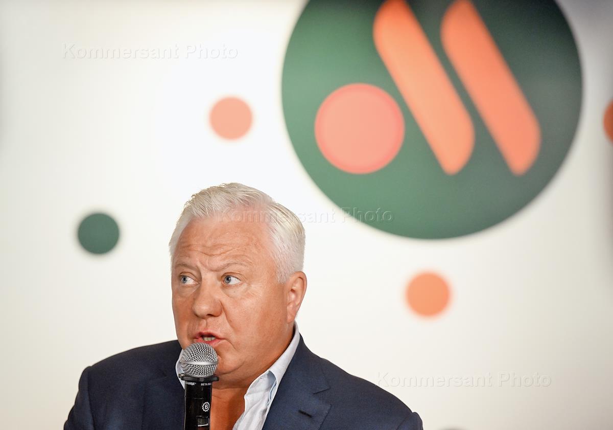 Press conference on the opening of McDonald's restaurants under the new brand "Vkusno - i Tochka" on Bolshaya Bronnaya. Entrepreneur Alexander Govor during a press conference.