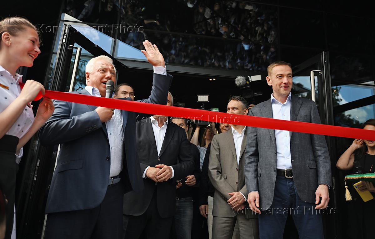 The opening ceremony of the renovated McDonald's restaurant under the new Vkusno i Tochka brand on Bolshaya Bronnaya Street. On March 14, McDonald's closed its restaurants in the Russian Federation, and on May 16, the company announced its withdrawal from the Russian market. Entrepreneur Alexander Govor (left), Deputy Chairman of the State Duma of Russia Sergei Neverov (second from left) and Secretary of State - Deputy Minister of Industry and Trade of Russia Viktor Yevtukhov (third from right) during the ceremony.