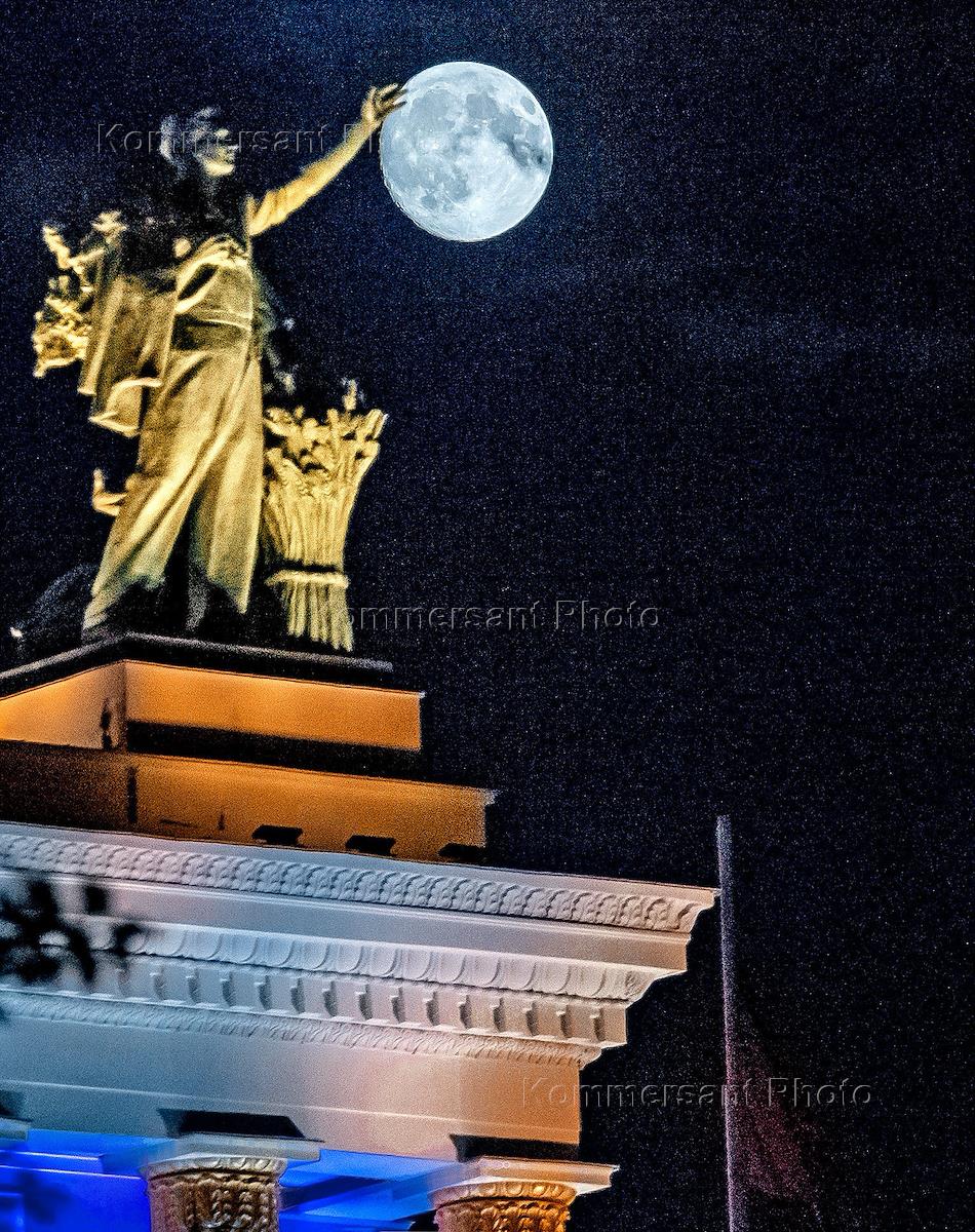 Celebration of the Day of Russia at VDNH. People in front of the main entrance.