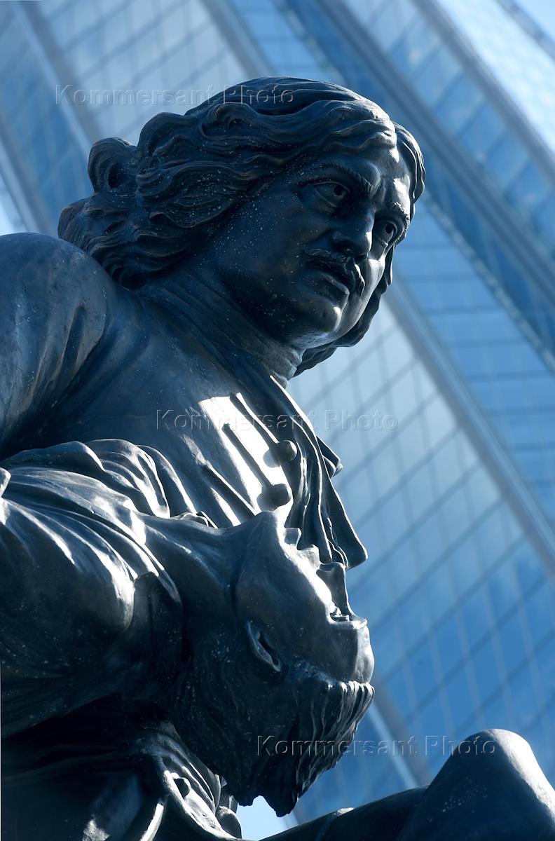 Виды Санкт-Петербурга. Памятник "Петр I, спасающий утопающих близ Лахты", возле общественно-делового комплекса "Лахта Центр" . Скульптор Степан Мокроусов-Гульельми, архитектор — Михаил Мамошин.