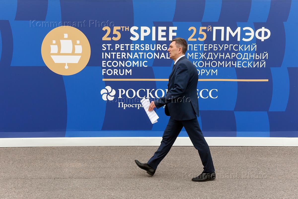 XXV Петербургский международный экономический форум (ПМЭФ) 2022 в конгрессно-выставочном центре (КВЦ) "Экспофорум". Жанровая фотография.