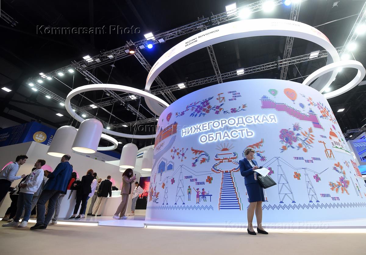 XXV St. Petersburg International Economic Forum (SPIEF) 2022 at the Expoforum Convention and Exhibition Center (CEC). Genre photography. Stand of the Nizhny Novgorod region at the forum.
