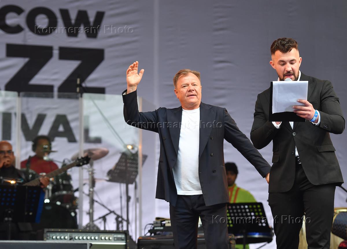 Moscow Jazz Festival. The first day. Musician Igor Butman (left) during a performance in the Hermitage Garden.