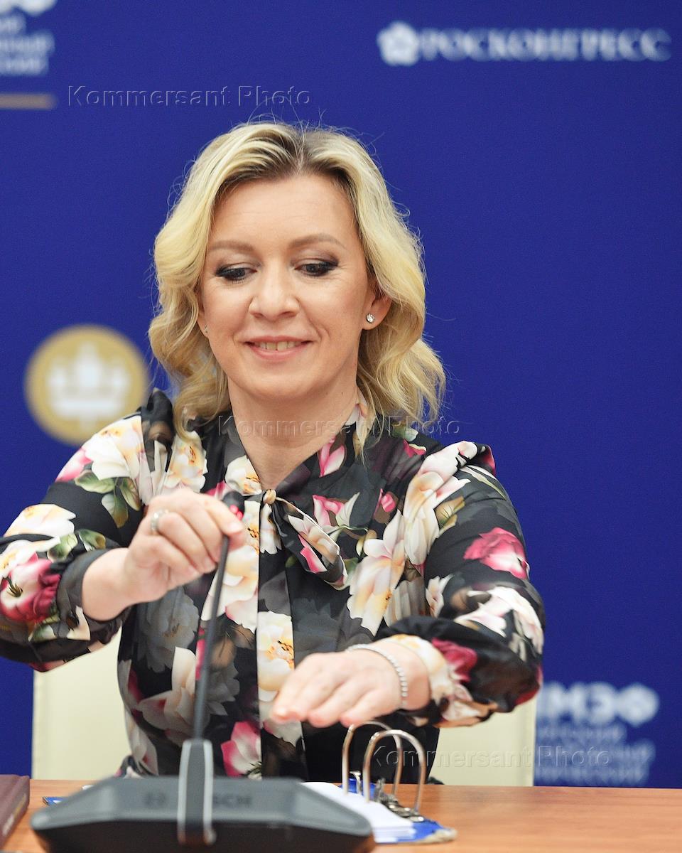 XXV St. Petersburg International Economic Forum (SPIEF) 2022 at the Expoforum Convention and Exhibition Center (CEC). Manager of the Information and Press Department of the Russian Foreign Ministry Maria Zakharova during a briefing on current foreign policy issues.