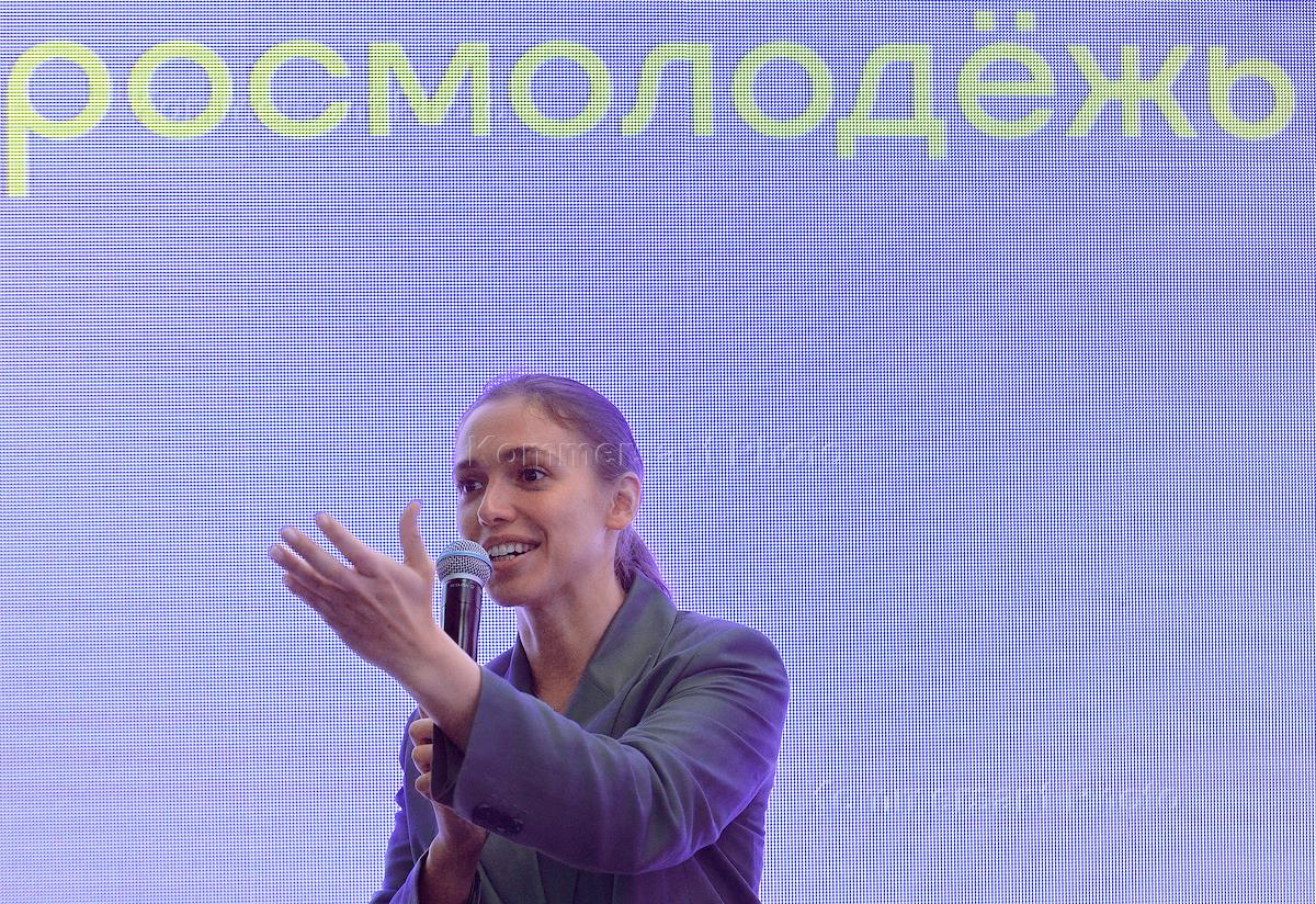 XXV Петербургский международный экономический форум (ПМЭФ) 2022 в конгрессно-выставочном центре (КВЦ) "Экспофорум". Руководитель Федерального агентства по делам молодежи (Росмолодежь) Ксения Разуваева во время форума.