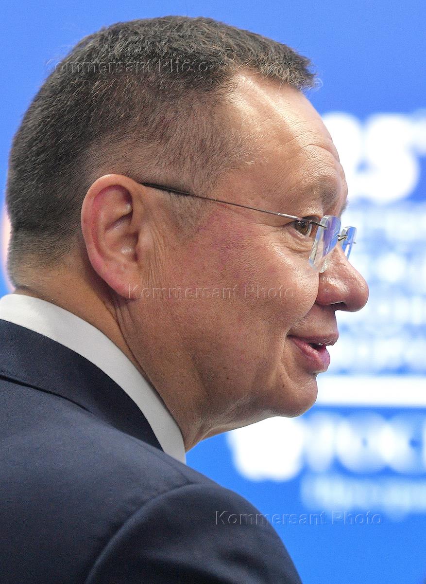 XXV St. Petersburg International Economic Forum (SPIEF) 2022 at the Expoforum Convention and Exhibition Center (CEC). CEO of the Russian-Chinese Business Park organization Chen Zhigang during the Russia-China business dialogue.