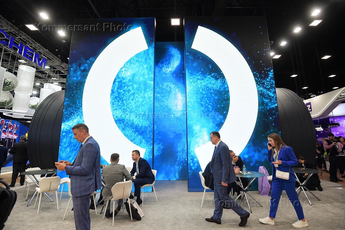 XXV Петербургский международный экономический форум (ПМЭФ) 2022 в конгрессно-выставочном центре (КВЦ) "Экспофорум". Стенд государственной корпорации "Ростех".