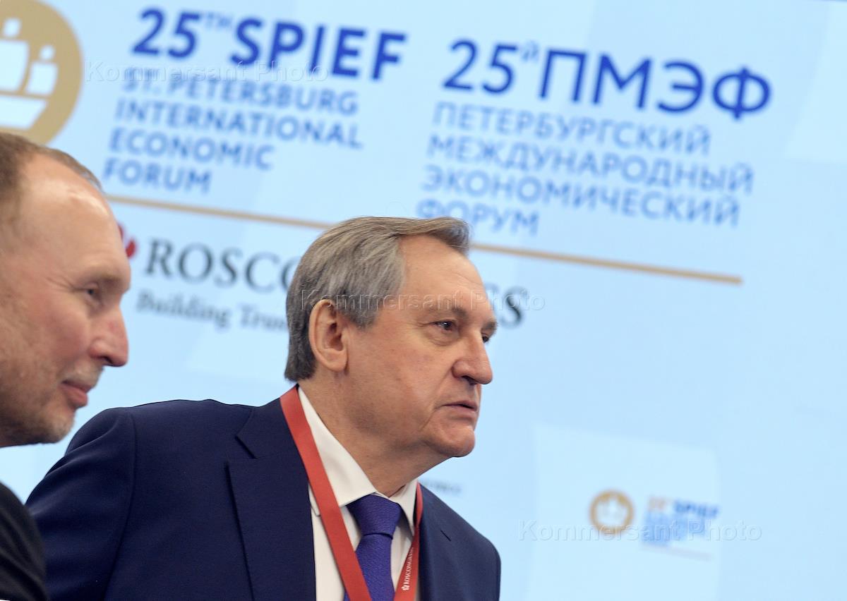 XXV St. Petersburg International Economic Forum (SPIEF) 2022 at the Expoforum Convention and Exhibition Center (CEC). Founder of AFK Sistema PJSC Vladimir Yevtushenkov (center) at the forum.