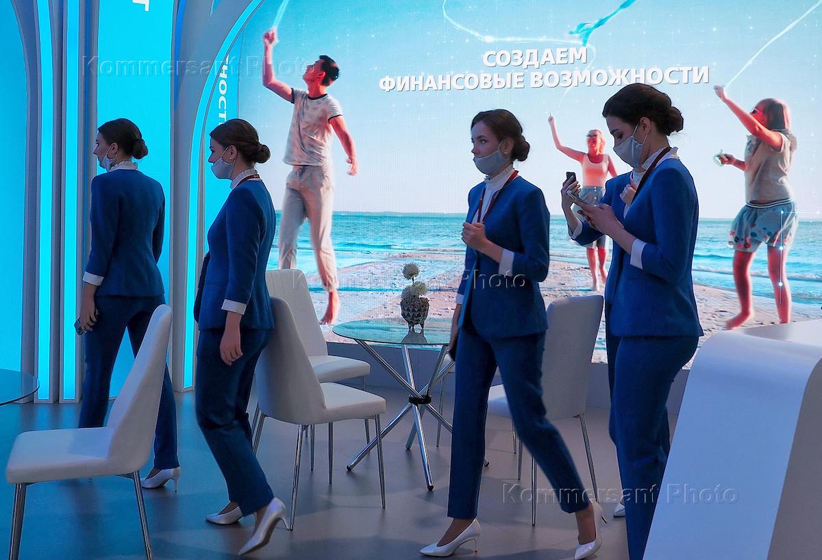 XXV St. Petersburg International Economic Forum (SPIEF) 2022 at the Expoforum Convention and Exhibition Center (CEC). Stand of VTB Bank.