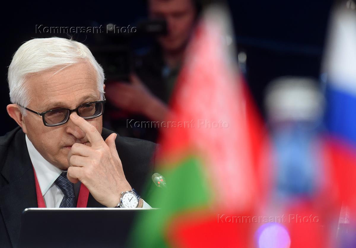 XXV Петербургский международный экономический форум (ПМЭФ) 2022 в конгрессно-выставочном центре (КВЦ) "Экспофорум". День второй. Сессия "Союзное государство: экономическая интеграция – новые задачи". Министр антимонопольного регулирования и торговли Белоруссии Владимир Колтович во время сессии.