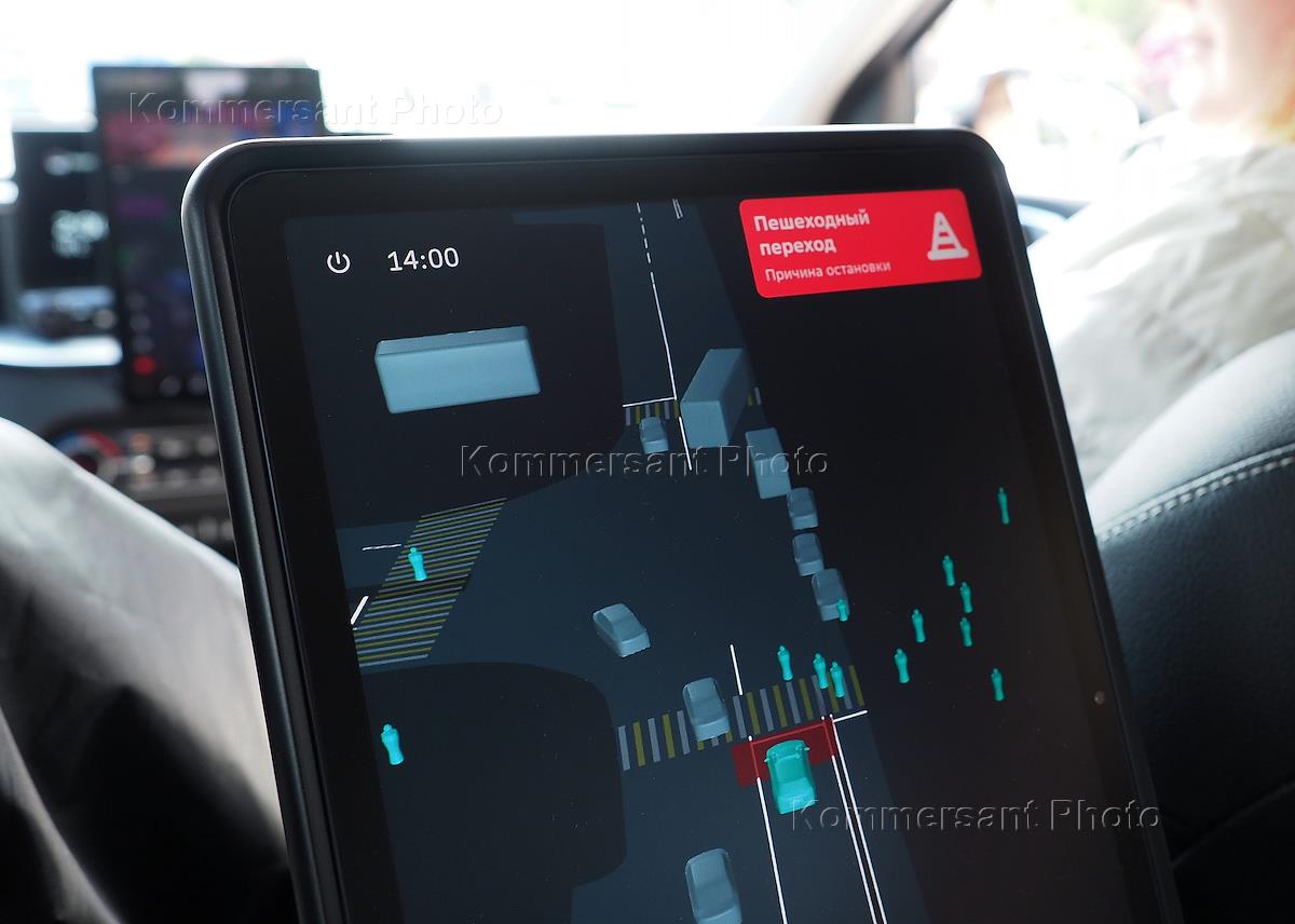 The first public testing of an unmanned vehicle in St. Petersburg, conducted by SberAvtoTech. Genre photography.