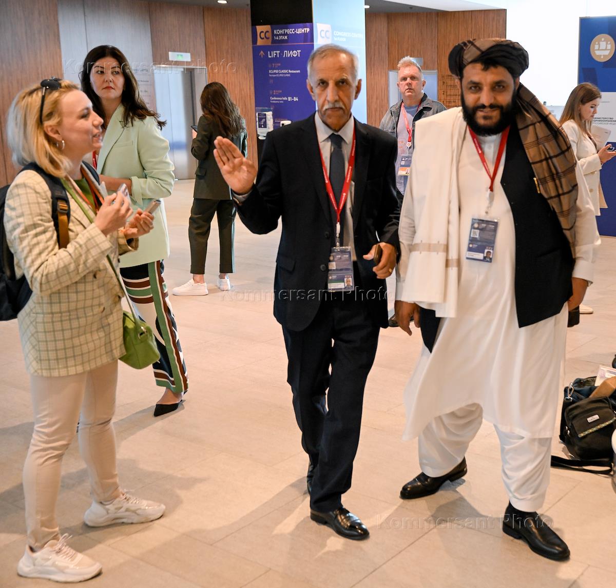 XXV St. Petersburg International Economic Forum (SPIEF) 2022 at the Expoforum Convention and Exhibition Center (CEC). Representative of the Taliban (the Taliban movement is under UN sanctions for terrorist activities) head of the Afghan Chamber of Commerce Mohammadyounis Hossein (right) at the forum.