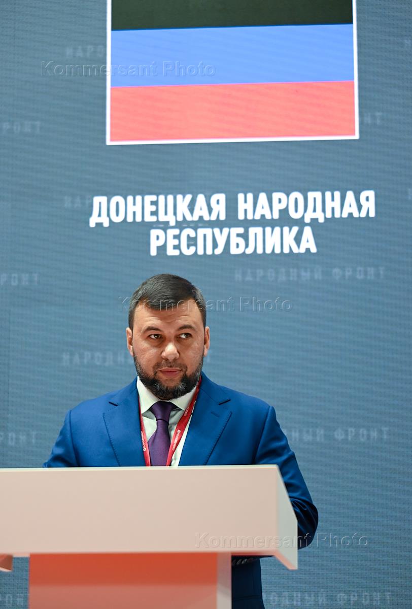 XXV Петербургский международный экономический форум (ПМЭФ) 2022 в конгрессно-выставочном центре (КВЦ) "Экспофорум". Глава ДНР Денис Пушилин (справа) во время форума.
