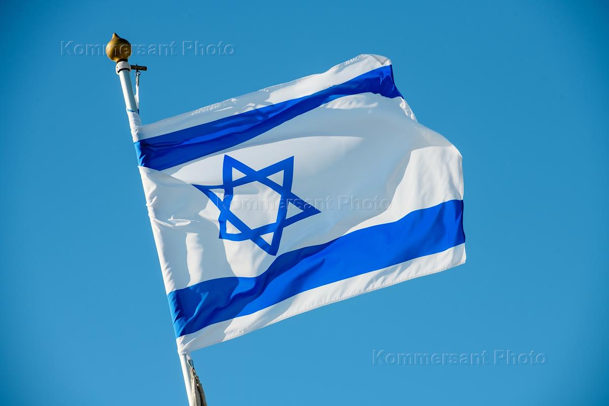 XXV Петербургский международный экономический форум (ПМЭФ) 2022 в конгрессно-выставочном центре (КВЦ) "Экспофорум". Жанровая фотография. Государственный флаг Израиля.