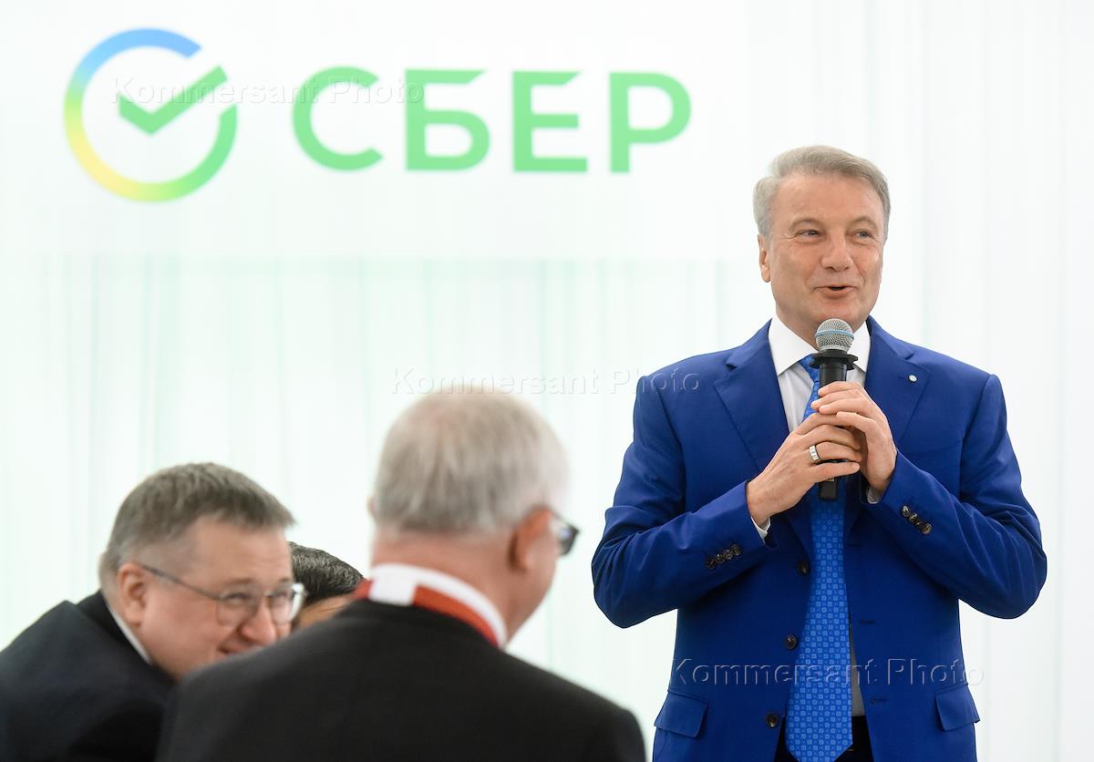 XXV Петербургский международный экономический форум (ПМЭФ) 2022. Деловой завтрак "Сбербанка" на тему "Российская экономика: как построить мост в будущее?". Президент, председатель правления Сбербанка России Герман Греф (в центре) во время мероприятия.