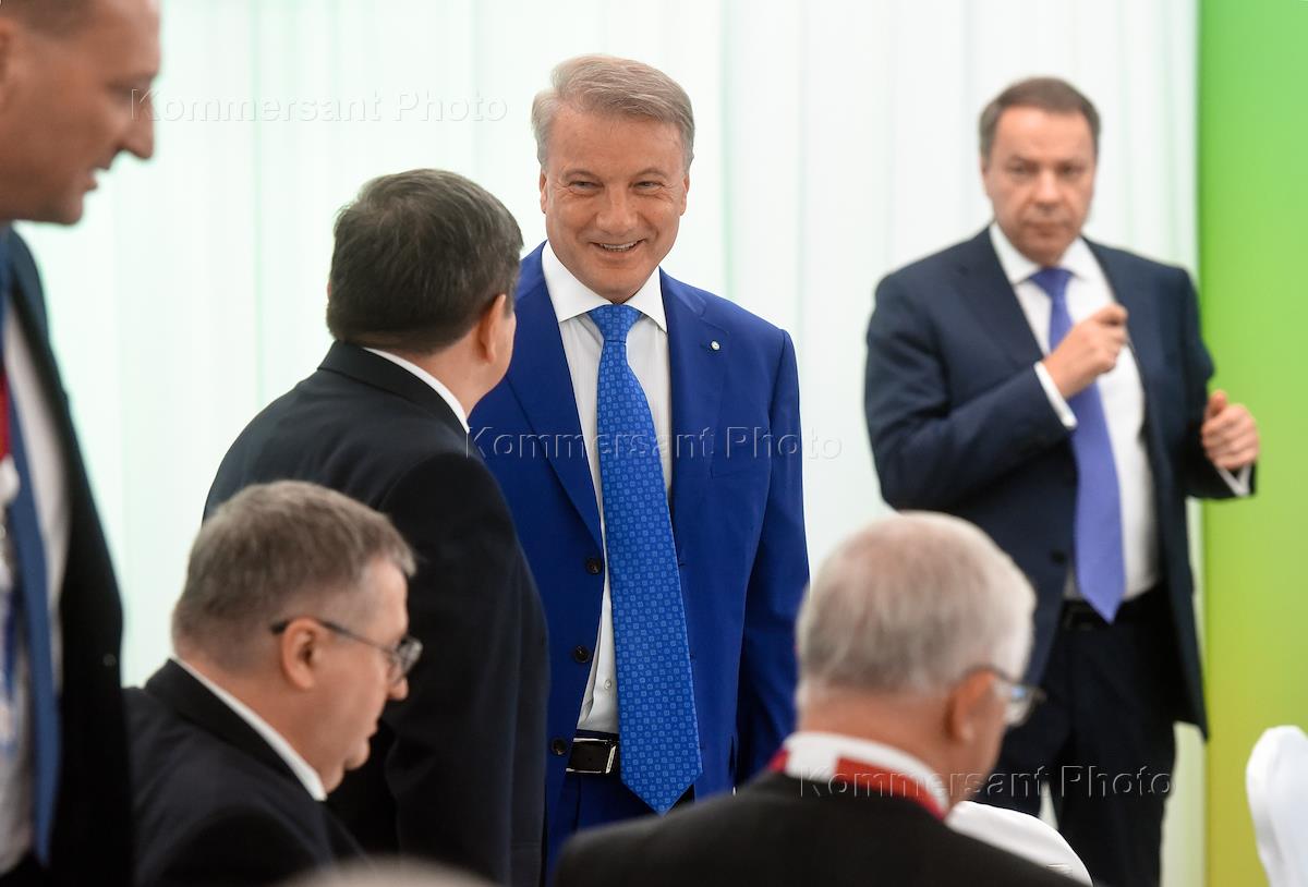 XXV Петербургский международный экономический форум (ПМЭФ) 2022. Деловой завтрак "Сбербанка" на тему "Российская экономика: как построить мост в будущее?". Президент, председатель правления Сбербанка России Герман Греф (в центре) во время мероприятия.