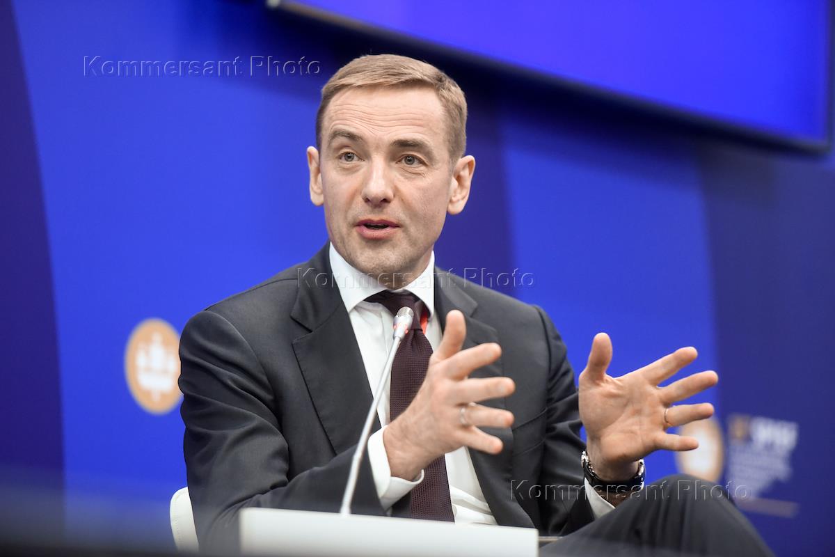 XXV St. Petersburg International Economic Forum (SPIEF) 2022 at the Expoforum Convention and Exhibition Center (CEC). Business session "New Challenges - New Logistics". Secretary of State - Deputy Minister of Industry and Trade of Russia Viktor Evtukhov during the session.