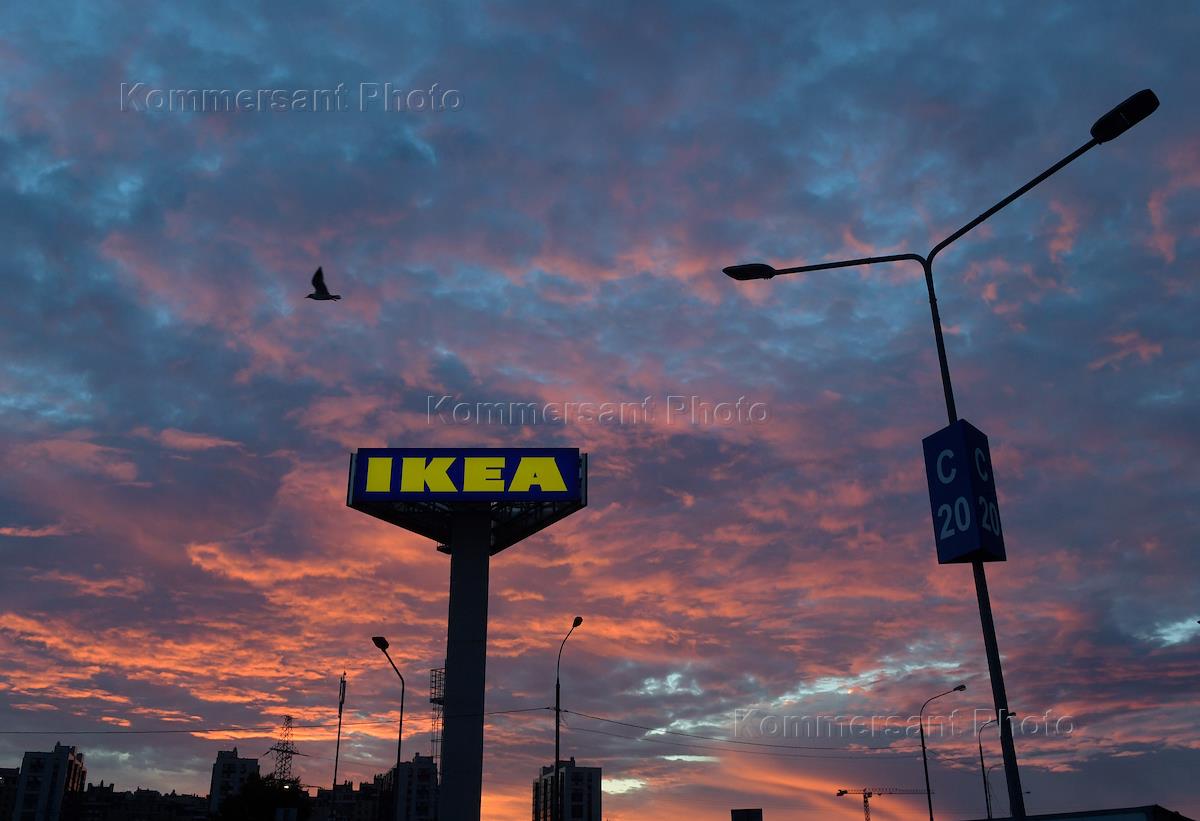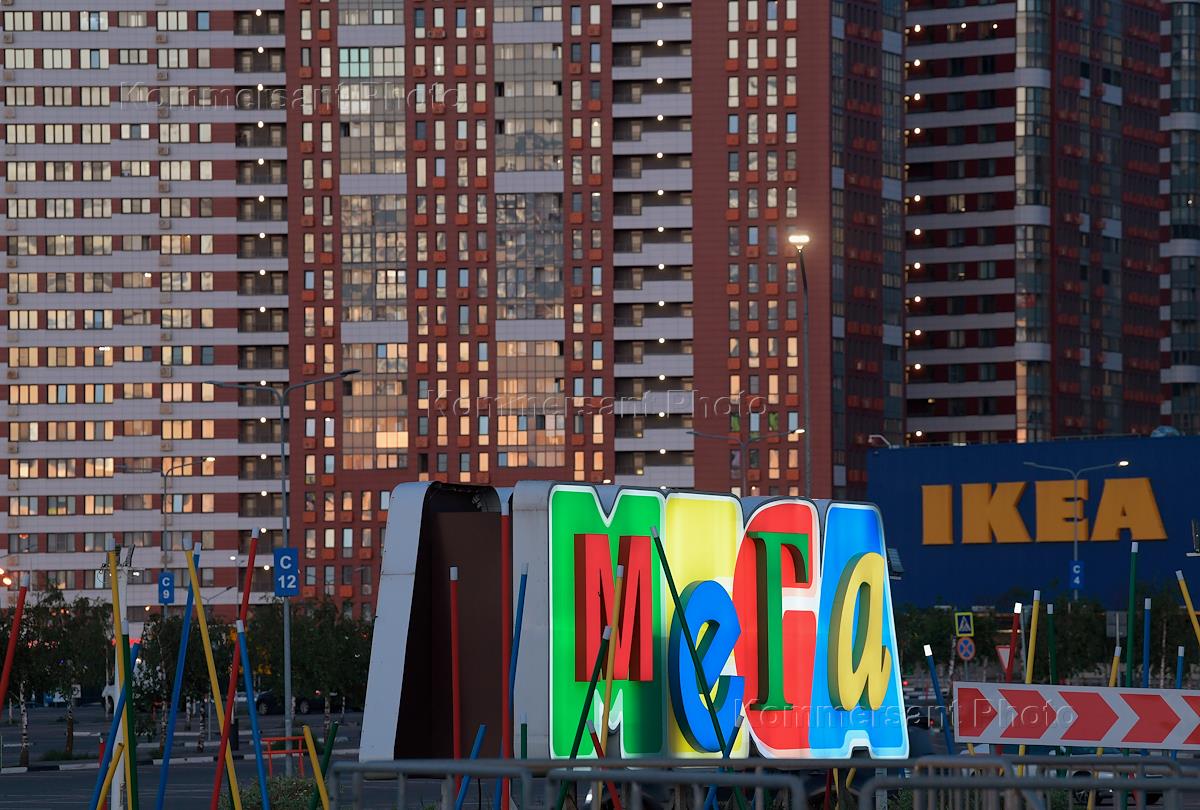Торговый центр (ТЦ) "МЕГА Химки". Вывеска шведского концерна IKEA (ИКЕА) на центре.