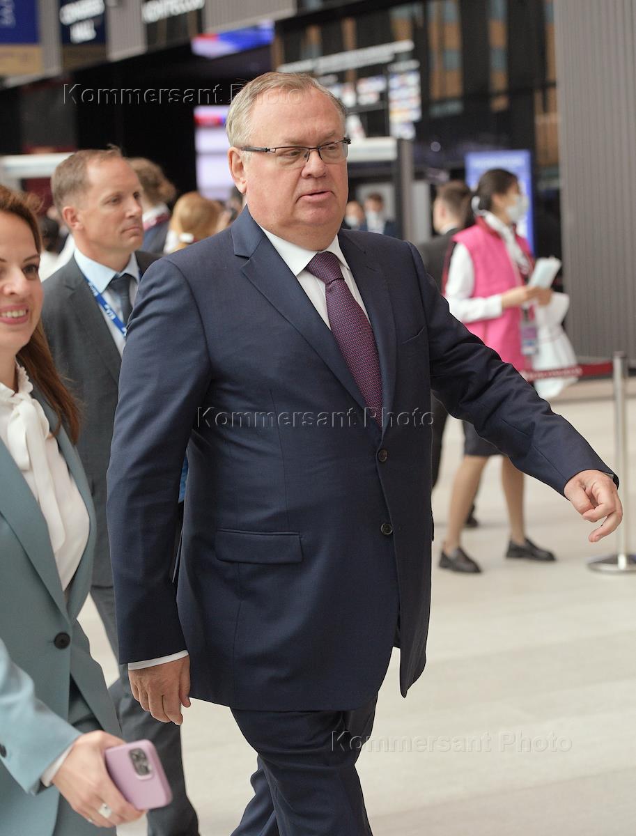 XXV St. Petersburg International Economic Forum (SPIEF) 2022 at the Expoforum Convention and Exhibition Center (CEC). Andrey Kostin, President and Chairman of the Board of PJSC VTB Bank, at the forum.