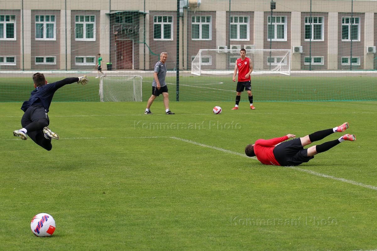 Открытая тренировка футбольного клуба "Рубин". Футболисты во время тренировки.