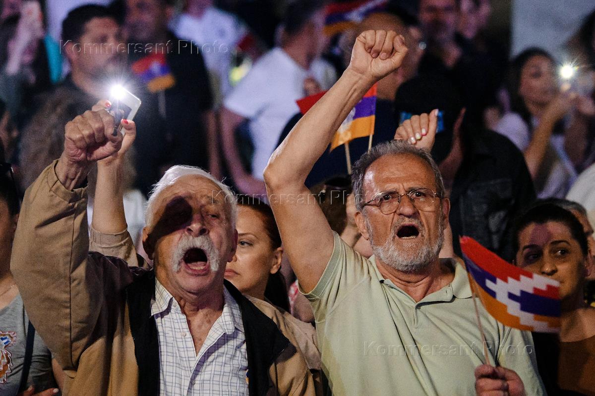 Протестные акции в Армении с требованием отставки премьер-министра Армении Никола Пашиняна. Участники оппозиционного движения "Сопротивление" во время митинга после шествия по улицам Еревана.