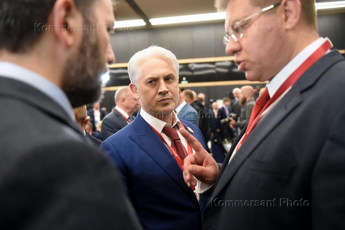 XXV Петербургский международный экономический форум (ПМЭФ) 2022 в конгрессно-выставочном центре (КВЦ) "Экспофорум". День третий. Сессия "Оценка состояния деловой среды, инвестиционного климата и инвестиционного потенциала в субъектах Российской Федерации". Слева направо: губернатор Новгородской области Андрей Никитин, президент торгово-промышленной палаты (ТПП) России Сергей Катырин и президент республики Татарстан Рустам Минниханов во время сессии.