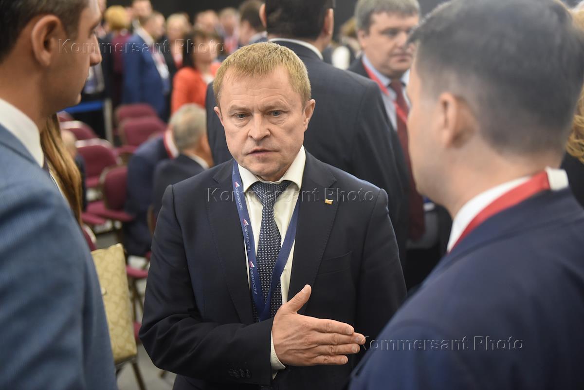 XXV St. Petersburg International Economic Forum (SPIEF) 2022 at the Expoforum Convention and Exhibition Center (CEC). Day three. Session "Assessment of the state of the business environment, investment climate and investment potential in the constituent entities of the Russian Federation". President of the public organization Opora Rossii Alexander Kalinin (center) during the session.