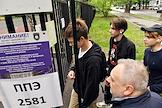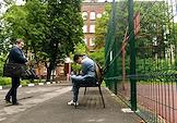 Проведение Единого государственного экзамена (ЕГЭ) по информатике в Государственном бюджетном образовательном учреждении города Москвы "Школе № 429". Жанровая фотография. Ученики перед входом в школу перед началом ЕГЭ.