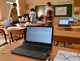 Проведение Единого государственного экзамена (ЕГЭ) по информатике в Государственном бюджетном образовательном учреждении города Москвы "Школе № 429". Жанровая фотография. Учитель в классе перед началом ЕГЭ.