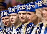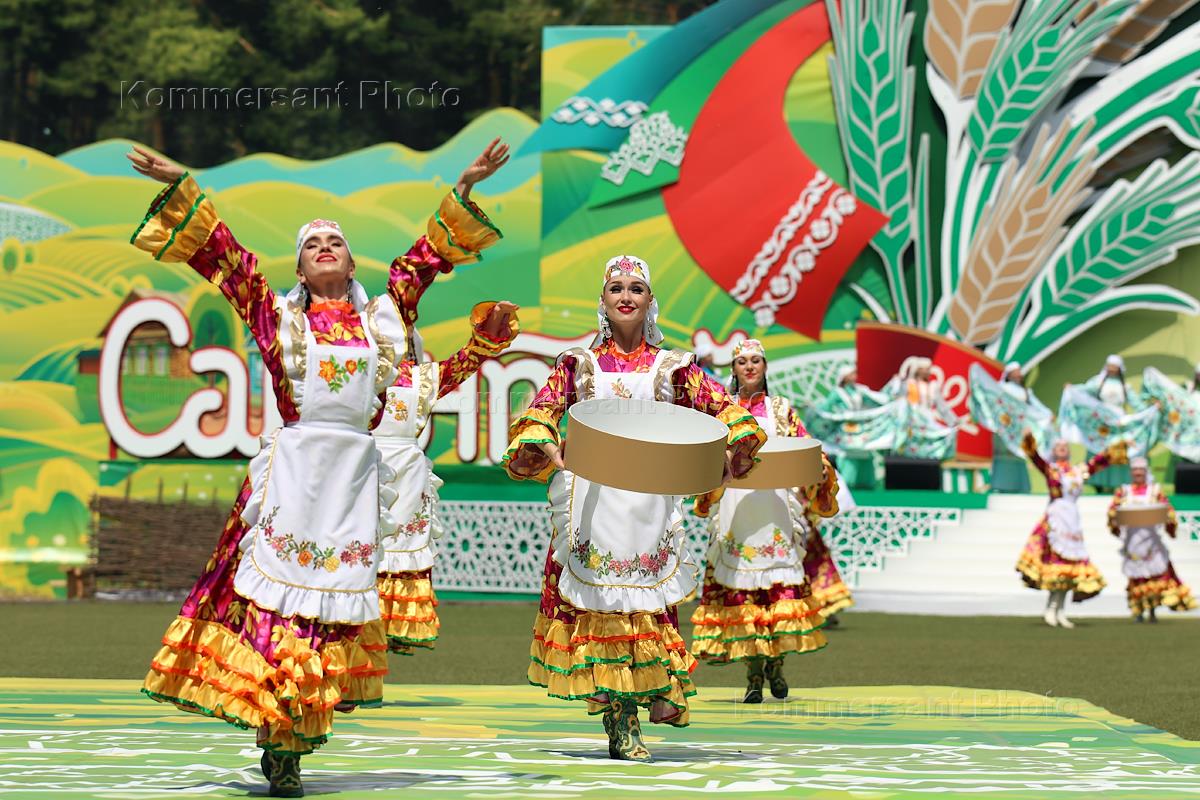 Национальный ежегодный татаро-башкирский праздник "Сабантуй" в жилом массиве "Мирный". Артисты во время праздника.