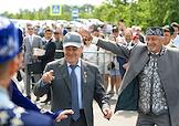 Национальный ежегодный татаро-башкирский праздник "Сабантуй" в жилом массиве "Мирный". Государственный советник Республики Татарстан Минтимер Шаймиев (в центре) во время праздника.