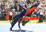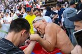 Национальный ежегодный татаро-башкирский праздник "Сабантуй" в жилом массиве "Мирный". Спортсмен во время праздника.