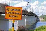 Виды Томска. Ремонт коммунального моста. Жанровая фотография. Предупреждающий знак "Осторожно! Строительные работы!".