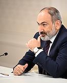 Рабочая поездка председателя Правительства России Михаила Мишустина в Минск. Заседание Евразийского межправительственного совета в расширенном составе. Премьер-министр Армении Никол Пашинян во время заседания.