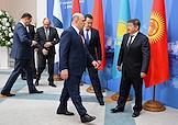 Рабочая поездка председателя Правительства России Михаила Мишустина в Минск. Заседание Евразийского межправительственного совета (ЕМС) в расширенном составе. Слева направо: премьер-министр Белоруссии Роман Головченко, премьер-министр Армении Никол Пашинян, председатель правительства России Михаил Мишустин, премьер-министр Казахстана Алихан Смаилов и премьер-министр Киргизии - руководитель администрации президента Киргизии, председатель Евразийского межправительственного совета Акылбек Жапаров перед началом церемонии совместного фотографирования перед заседанием глав делегаций государств - участников ЕМС в расширенном составе.