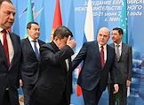 Рабочая поездка председателя Правительства России Михаила Мишустина в Минск. Заседание Евразийского межправительственного совета (ЕМС) в расширенном составе. Слева направо: председатель Коллегии Евразийской экономической комиссии (ЕЭК) Михаил Мясникович, премьер-министр Армении Никол Пашинян и премьер-министр Казахстана Алихан Смаилов после церемонии совместного фотографирования перед заседанием глав делегаций государств - участников ЕМС в расширенном составе.