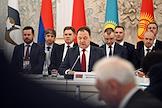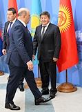 Рабочая поездка председателя Правительства России Михаила Мишустина в Минск. Заседание Евразийского межправительственного совета (ЕМС) в расширенном составе. Слева направо: премьер-министр Казахстана Алихан Смаилов, председатель правительства России Михаил Мишустин и премьер-министр Киргизии - руководитель администрации президента Киргизии, председатель Евразийского межправительственного совета Акылбек Жапаров перед началом церемонии совместного фотографирования перед заседанием глав делегаций государств - участников ЕМС в расширенном составе.