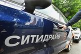 Работа каршеринговой компании "СитиДрайв". Жанровая фотография. Автомобиль компании на парковке.