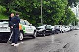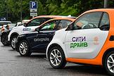 Работа каршеринговой компании "СитиДрайв". Жанровая фотография. Автомобили компании на парковке.