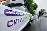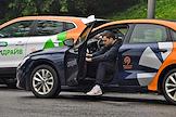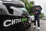 Работа каршеринговой компании "СитиДрайв". Жанровая фотография. Клиент компании за рулем автомобиля.