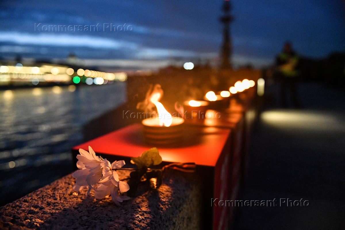 Акция "Линия памяти", посвященная 81-й годовщине начала Великой Отечественной войны, на Крымской набережной парка "Музеон". В память о каждом дне Великой Отечественной войны в рамках акции зажгли 1418 свечей.