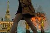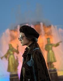 Московская неделя моды на ВДНХ. Коллективный показ дизайнерских коллекций у фонтана "Дружба народов". Жанровая фотография.