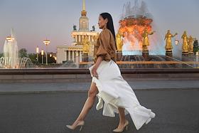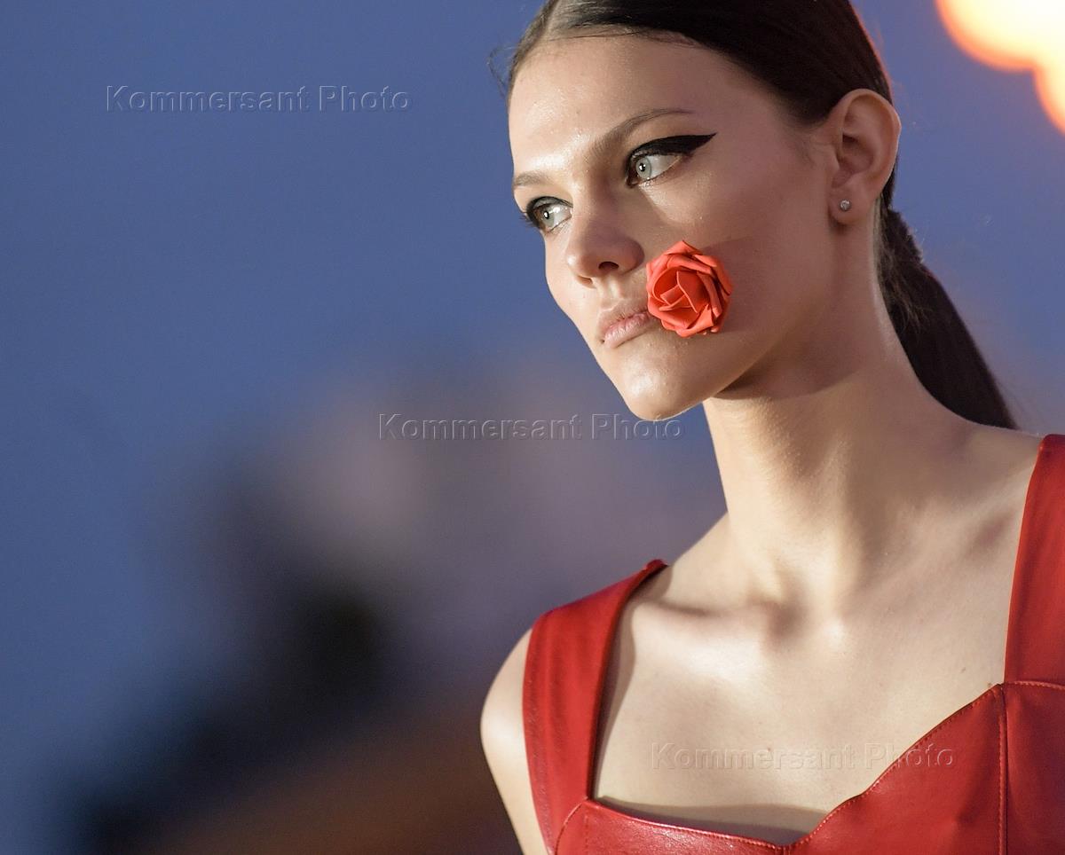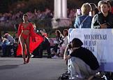 Московская неделя моды на ВДНХ. Коллективный показ дизайнерских коллекций у фонтана "Дружба народов".