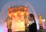 Московская неделя моды на ВДНХ. Коллективный показ дизайнерских коллекций у фонтана "Дружба народов". Жанровая фотография. Струи фонтана.