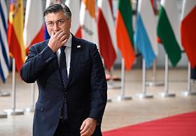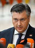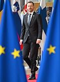 Саммит Евросоюза (ЕС) в Брюсселе. День второй. Темы обсуждения: финансово-экономическая ситуация в Европе, в том числе последствия санкций, проблемы с поставками энергоносителей и сдерживание инфляции. Премьер-министр Хорватии Андрей Пленкович во время саммита.