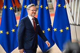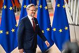 Саммит Евросоюза (ЕС) в Брюсселе. День второй. Темы обсуждения: финансово-экономическая ситуация в Европе, в том числе последствия санкций, проблемы с поставками энергоносителей и сдерживание инфляции. Премьер-министр Чехии Петр Фиала во время саммита.