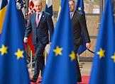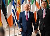 Саммит Евросоюза (ЕС) в Брюсселе. День второй. Темы обсуждения: финансово-экономическая ситуация в Европе, в том числе последствия санкций, проблемы с поставками энергоносителей и сдерживание инфляции. Премьер-министр Ирландии Михол Мартин (слева) во время саммита.